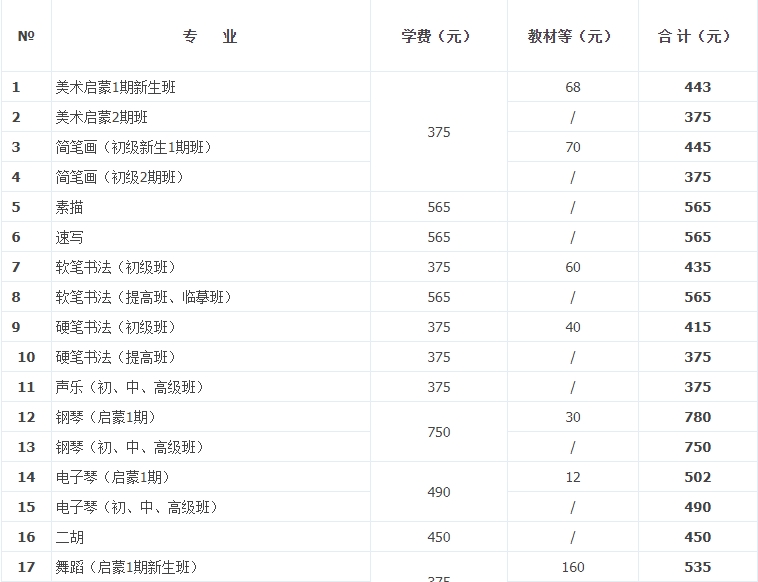 ※注:1、学费为2017年下学期课时收费(时间:2017年9月16日至2018年元月14日);