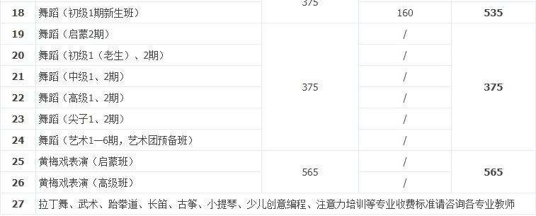2、舞蹈新生班服装费160元:含春秋季款和夏季款服装各一套、舞蹈鞋一双。