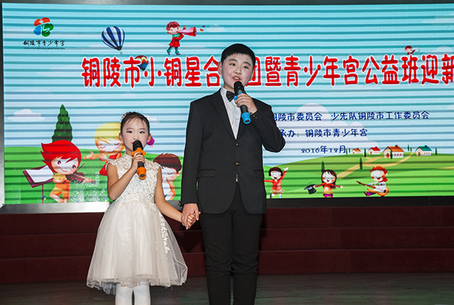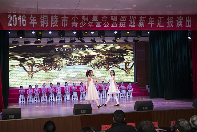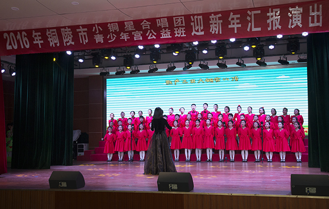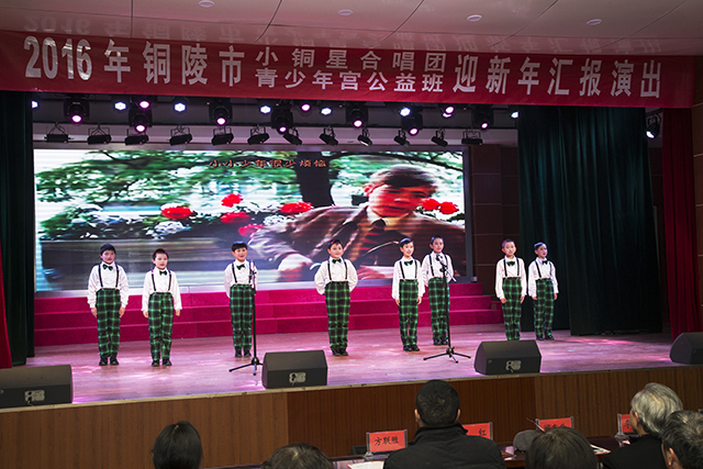 12月16日下午,筹备已久的“铜陵市小铜星合唱团暨青少年宫公益班迎新年汇报演出”在小铜星剧场隆重开幕,演出由团市委、市少工委联合主办,市青少年宫承办,团市委书记李波、市文明办副主任张春霞、市政府妇儿工委办公室主任钱玮芳、市第一中学党委副书记方联胜及市青少年宫主任魏美兰等领导观看了演出,出席本次演出的嘉宾还有来自市财政局、市人社局、市音乐家协会、市文化馆、一县三区教育局、全市近三十所中小学的负责人以及专程从北京赶来的已年逾七十的青少年宫老主任阚东升先生。