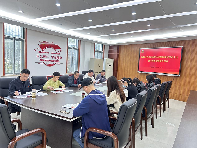 2025年11月14日,铜陵市青少年宫党支部召开第四季度党员大会暨开展11月份主题党日活动。党支部书记刘锋主持会议并讲话。