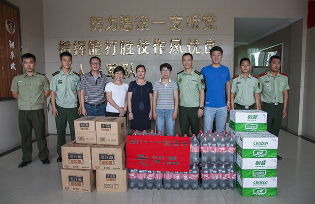 今年是建军90周年。 8月1日上午,由团市委副书记任煕儒亲自带队,市青少年宫主任魏美兰、副主任刘锋等一行5人来到市消防支队特勤中队,为官兵们送去矿泉水、橙汁等消暑慰问物品,并与部队官兵亲切座谈。任副书记代表全市广大团员青年及青少年宫全体师生向消防官兵送上了节日的问候和诚挚的祝福,大家均表示要以实际行动不断深化可贵的军民鱼水情。