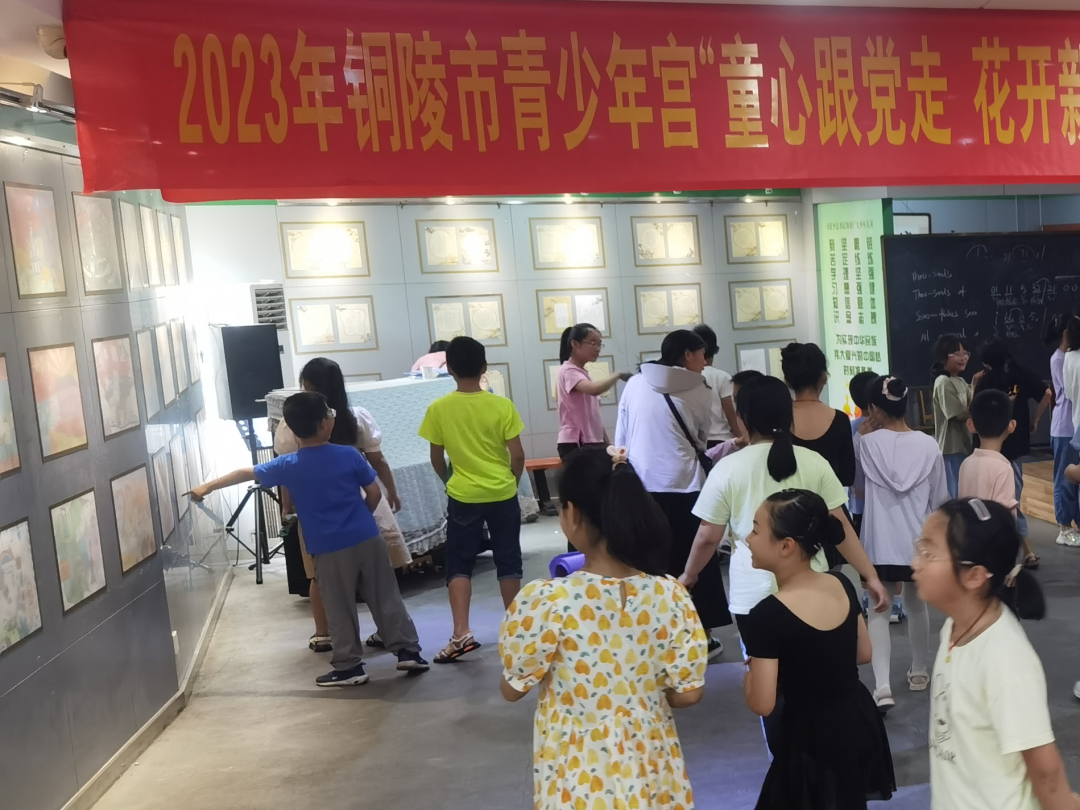 “童心跟党走 花开新时代”,为庆祝中国共产党成立102周年,营造铜陵市青少年宫建宫40周年欢乐喜庆的良好氛围,7月1日,铜陵市青少年宫在综合楼素质教育展厅举办第四届素质教育成果书画作品展活动。