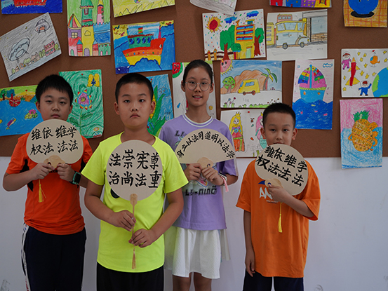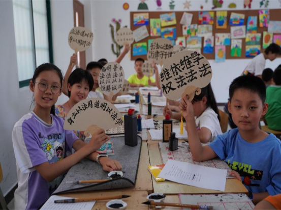 在“DIY法治团扇”创意活动中,我宫专业教师宋振洲、万瑞吉,分别指导学员们以书法和绘画的形式,将法律元素与作品创作充分融合,体现对法律知识的感悟和思考,在潜移默化中让学员接受法治文化的熏陶浸染,教育引导他们学法、遵法、守法,携手共护健康成长。