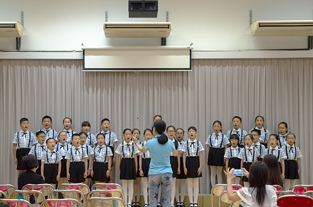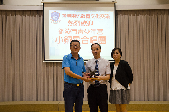 在美丽的香港上水惠州公立学校,师生们受到了黄永强校长、周秀梅主席及同仁们的热情接待,该校合唱团表演了两首好听的歌曲《Be our guest》和《Get me to thechurch on time》,小铜星合唱团则演唱了歌曲《东方之珠》和《让世界充满爱》,友谊的种子在旋律中悄悄地流淌,两地一见如故的同学们很快就成了无话不谈的好朋友,还互赠了心愿小礼物,最后,两个合唱团即兴齐唱歌曲《Edelweiss》,双方在愉快和谐的歌声中依依惜别,并相约有机会一定还要再相见。