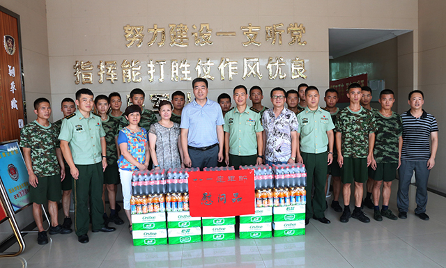 为纪念建军89周年,进一步深化军民鱼水情,致敬抗洪一线消防官兵,8月1日上午,由团市委副书记方小雄亲自带队,市青少年宫主任魏美兰、副主任刘锋等一行5人来到市消防支队特勤中队,为官兵们送去矿泉水、橙汁等消暑慰问物品,在慰问现场,方书记代表全市广大团员青年及青少年宫全体师生向消防官兵致以节日的问候和诚挚的祝福。