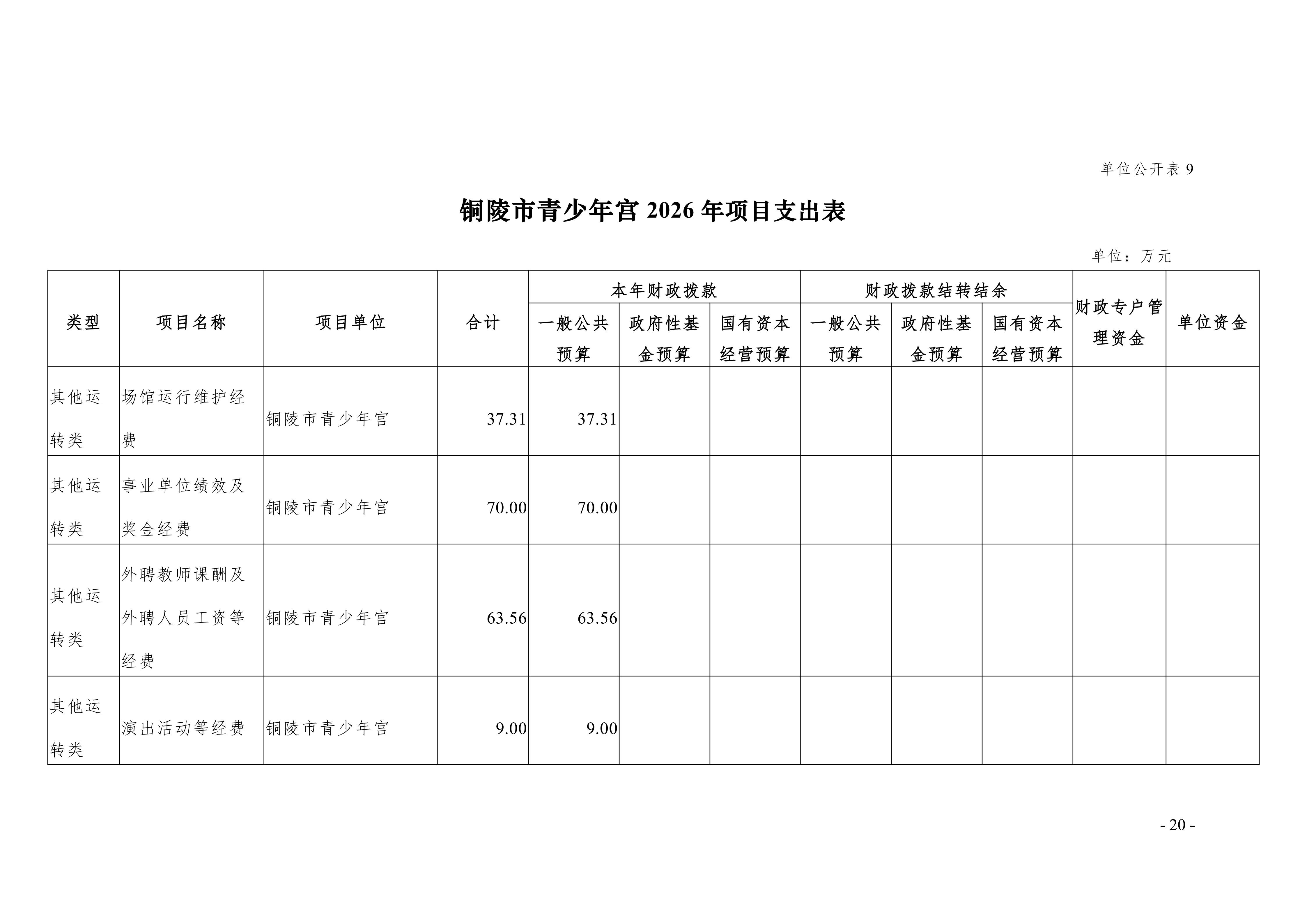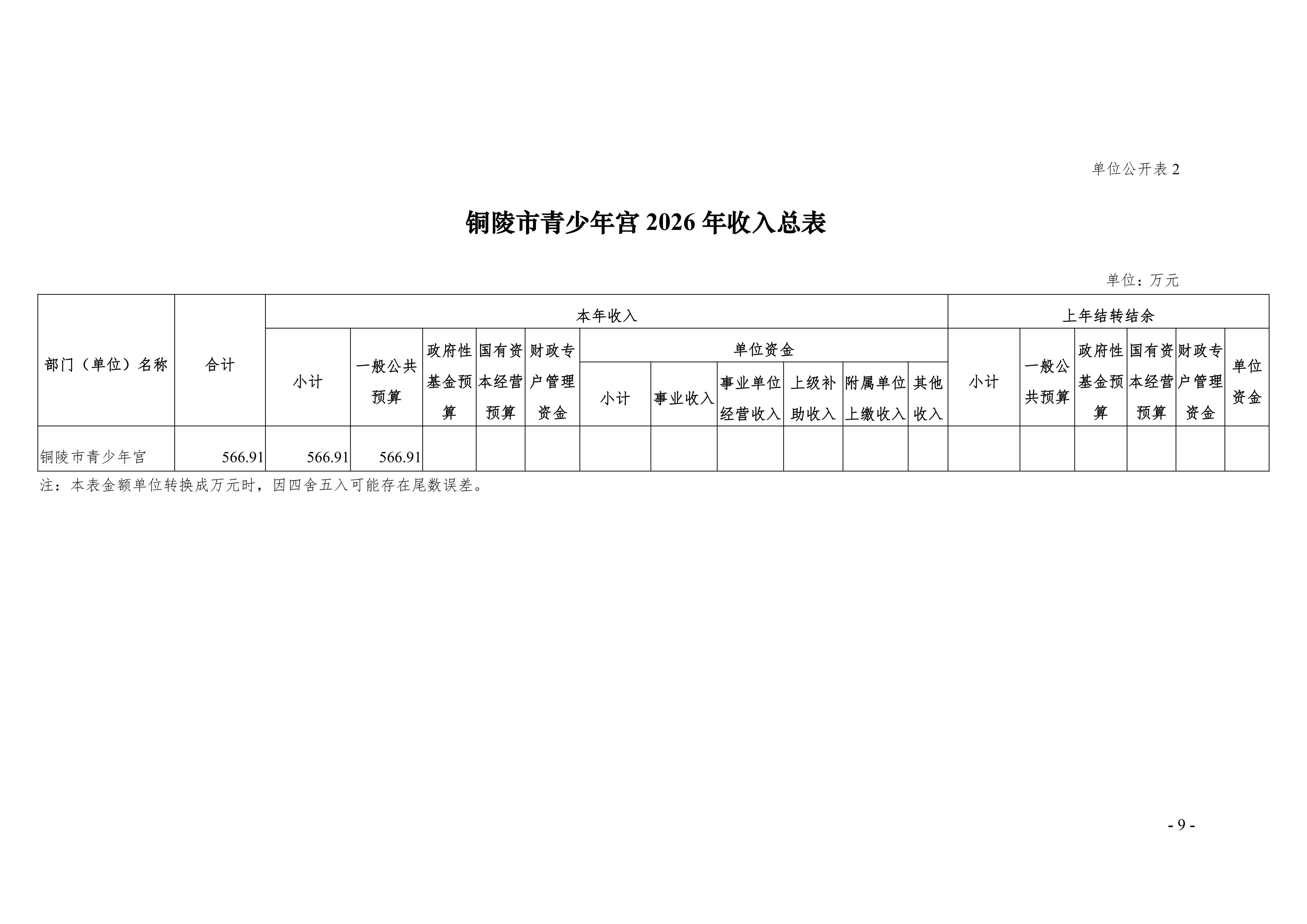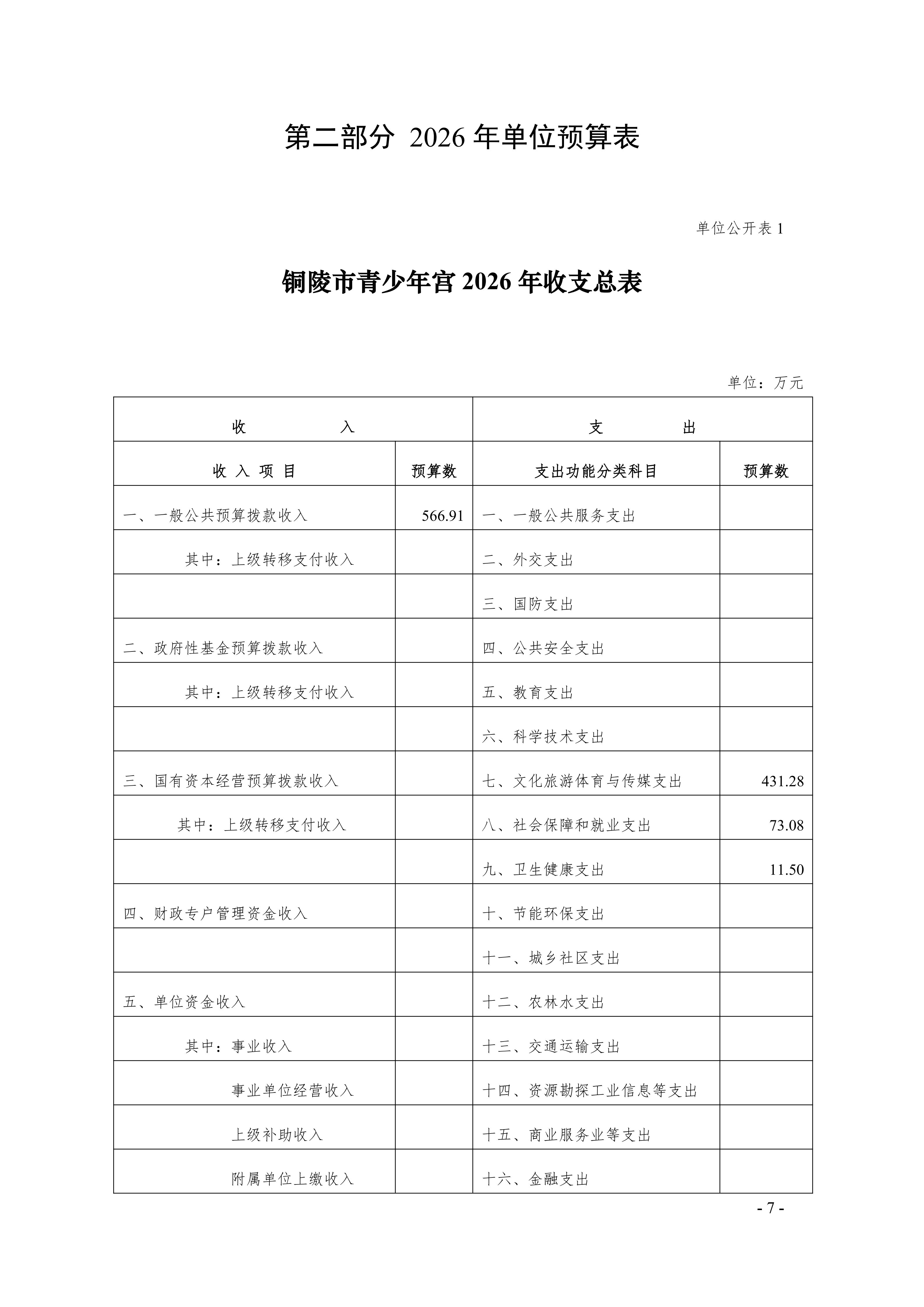 2026年铜陵市青少年宫单位预算公开