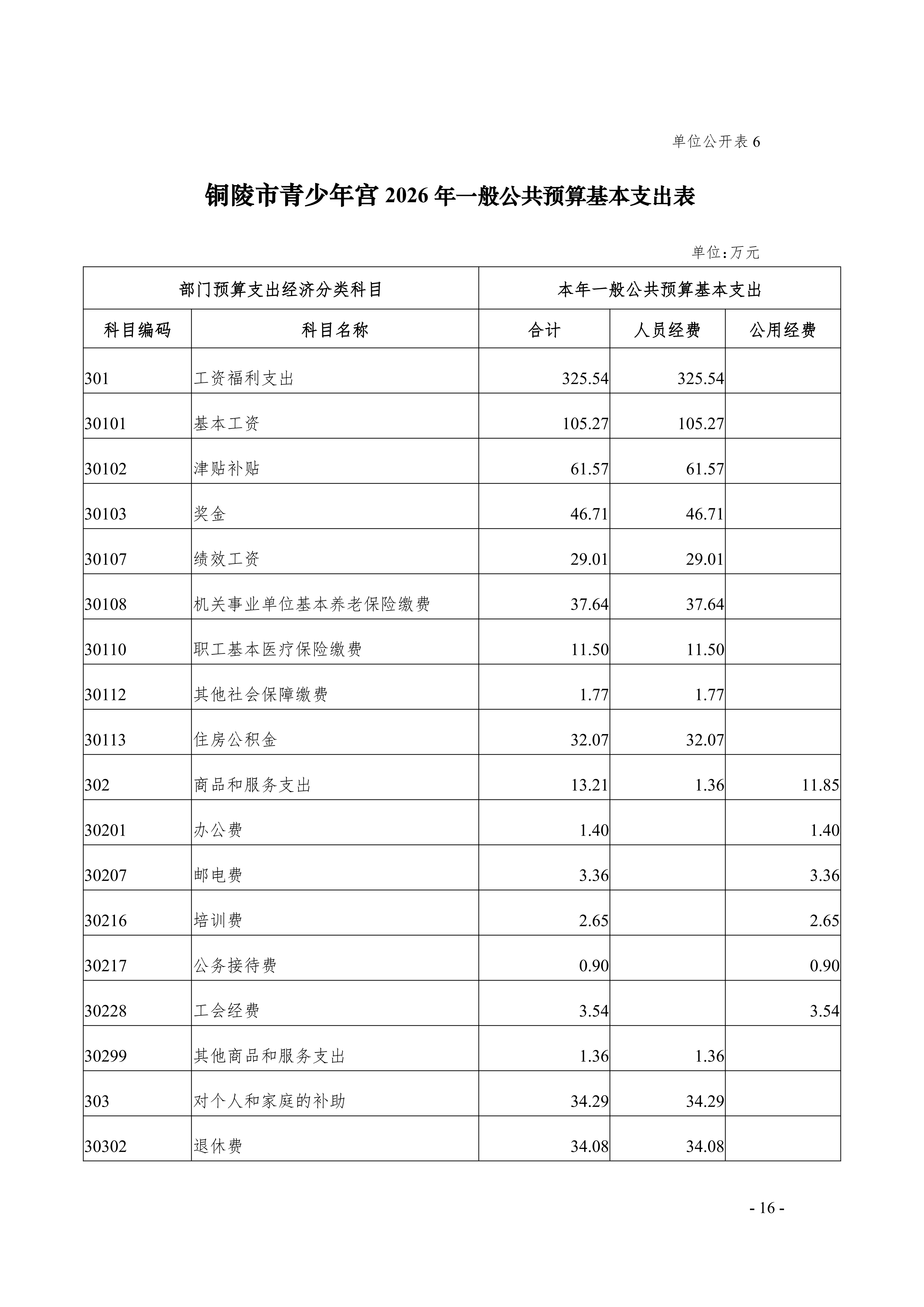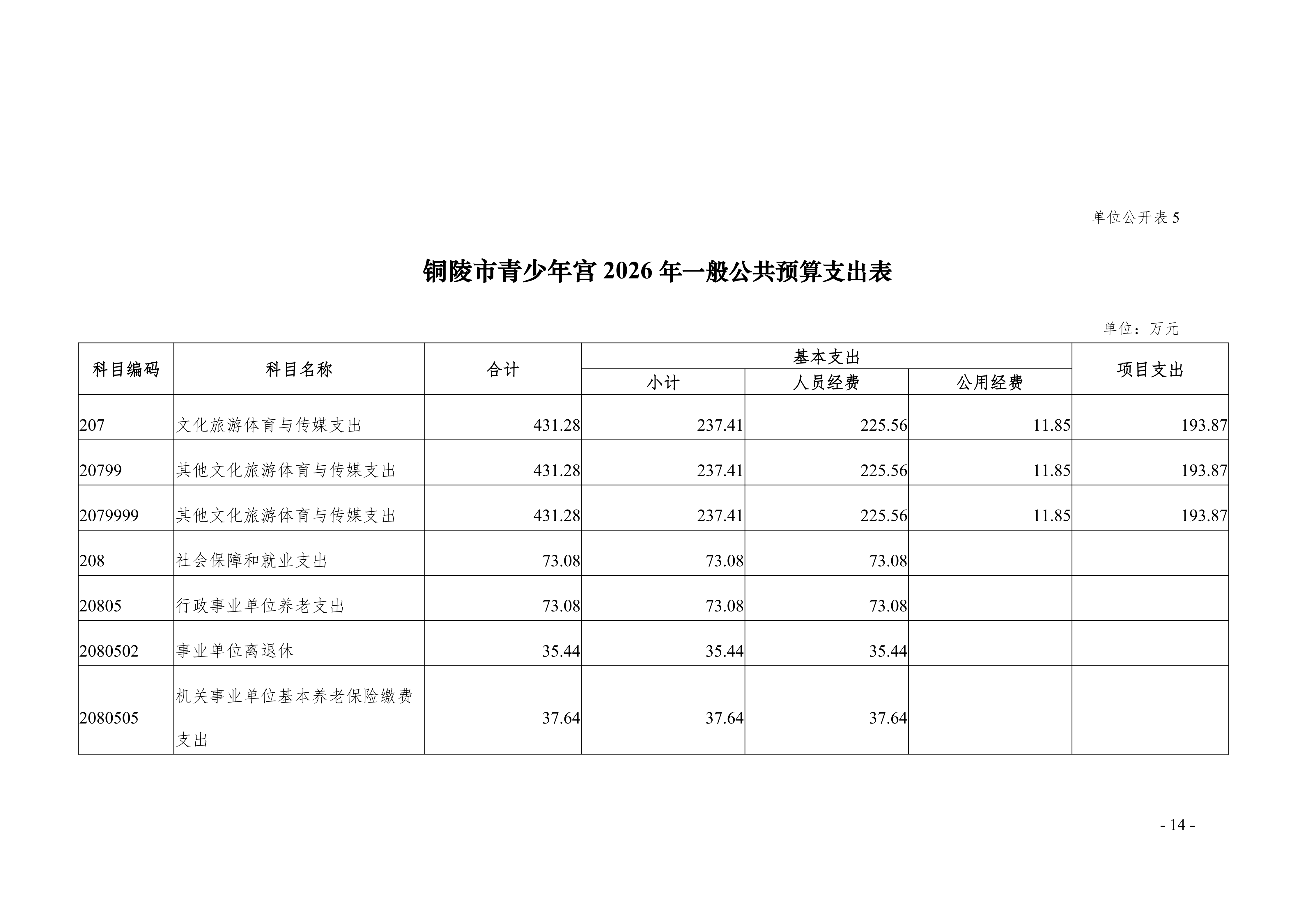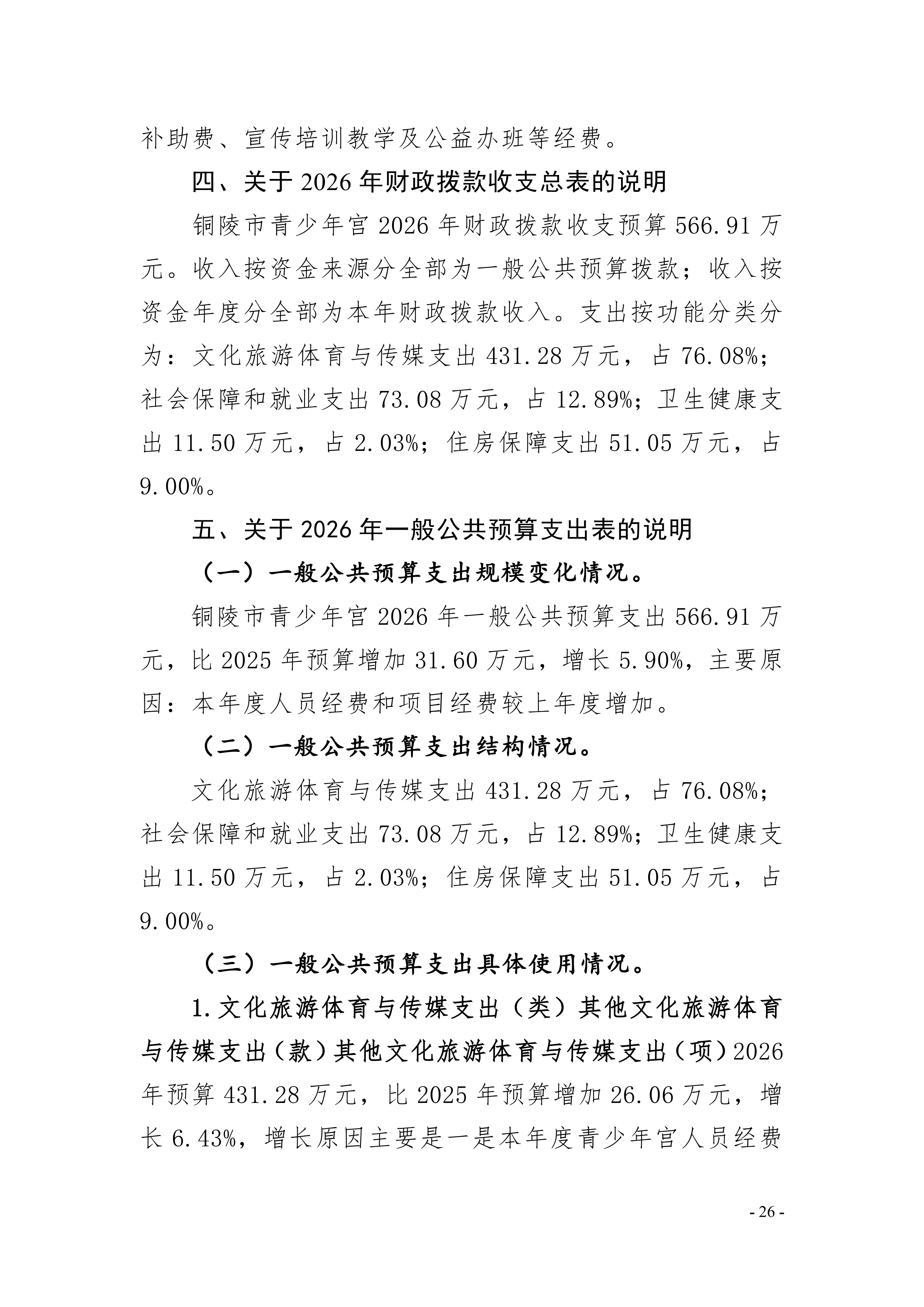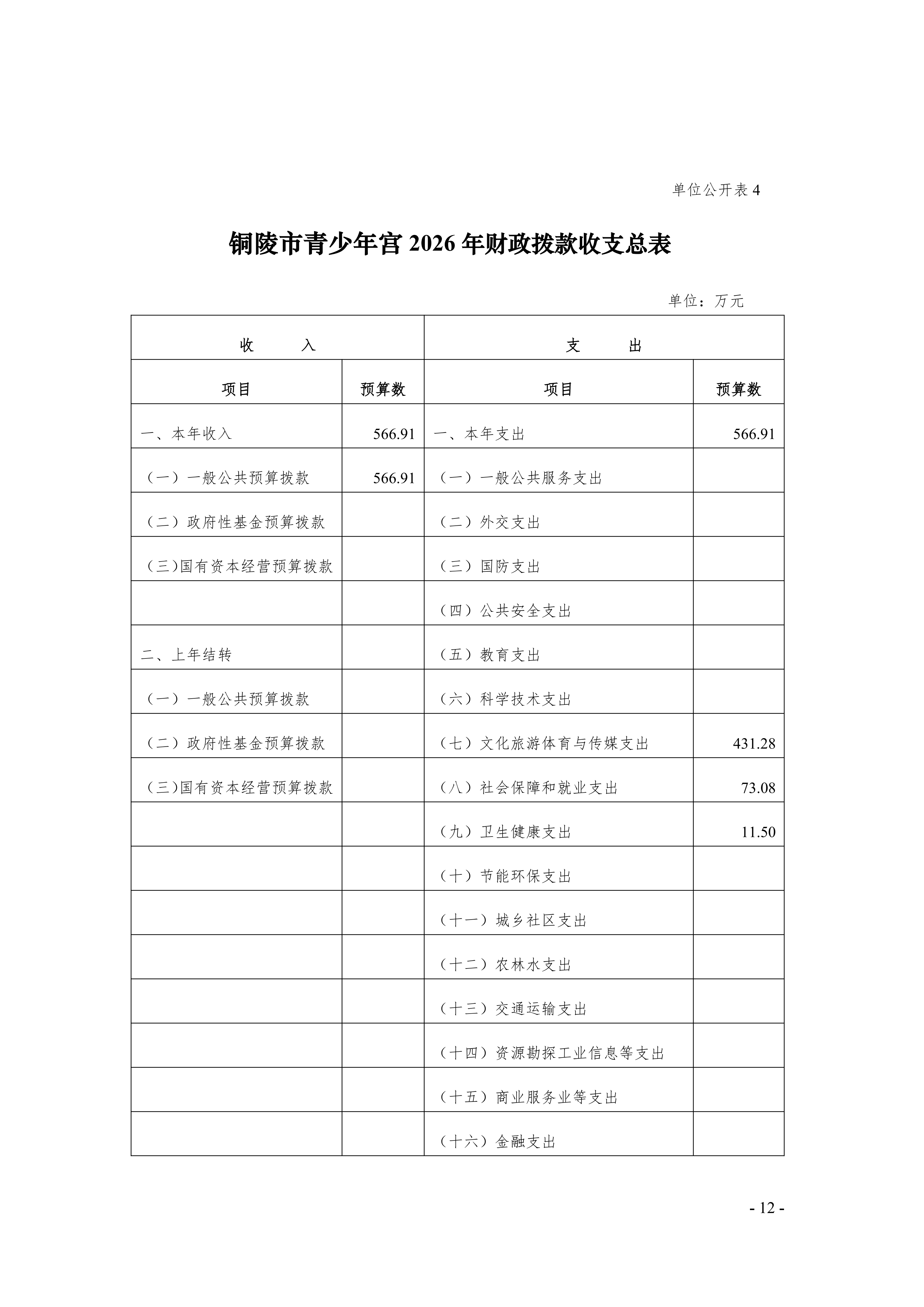 2026年铜陵市青少年宫单位预算公开