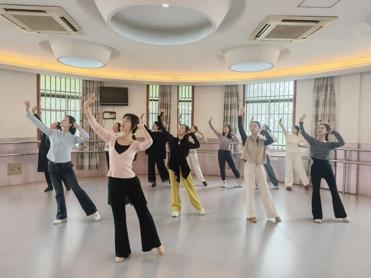实操练习阶段,现场氛围浓厚有序。舞蹈专业教师充分发挥专业优势,与其他专业教师结成帮扶对子,相互纠正动作细节、交流发力技巧与节奏把控方法,打破学科壁垒,形成互帮互学、协同共进的良好氛围。在熟练掌握基本步伐后,全体教师集中展示学习成果,以整齐规范的动作,充分体现了本次教研活动的扎实成效,彰显了“各展所长、共同提升”的教研理念。